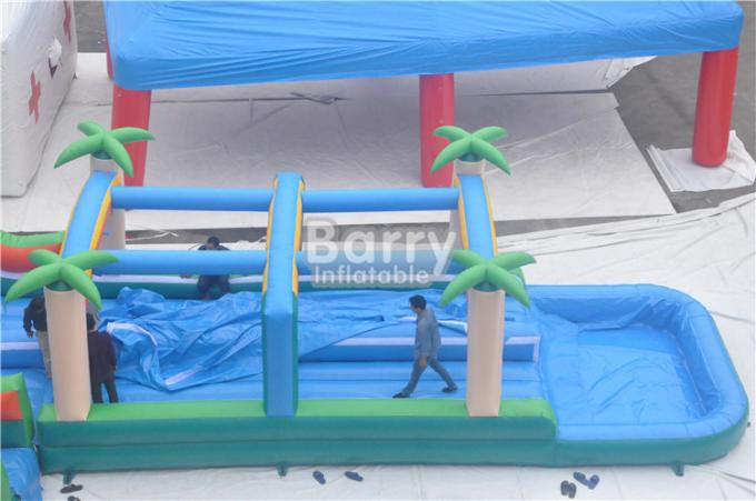 Jungle theme commercial use giant inflatable water slide , detachable water slide with pool