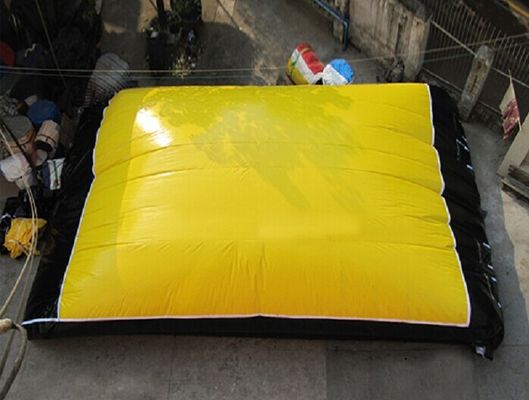 Our big air bag has 2 chambers: the bottom chamber is firm (maintaining the stability) while the upper one is soft (soothing your landing). The internal air pumps (not exposed to the outside environment) ensure a constant air pressure. Even if the upper chamber is too soft, the jumper will never hit the ground since the bottom chamber is there to absorb the fall.
